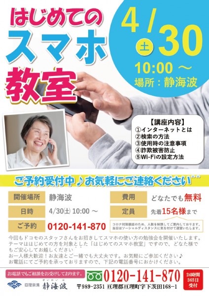 新着情報NEWS スマホ教室 2022/04/05 4月30日(土)スマホ教室今回も「ドコモショップ亘理」の皆様にご協力いただき開催となりましたいつもありがとうございます今回の講座は最近スマホを使い始めた方向けの内容となっておりますので、皆様ぜひご参加ください 戻る